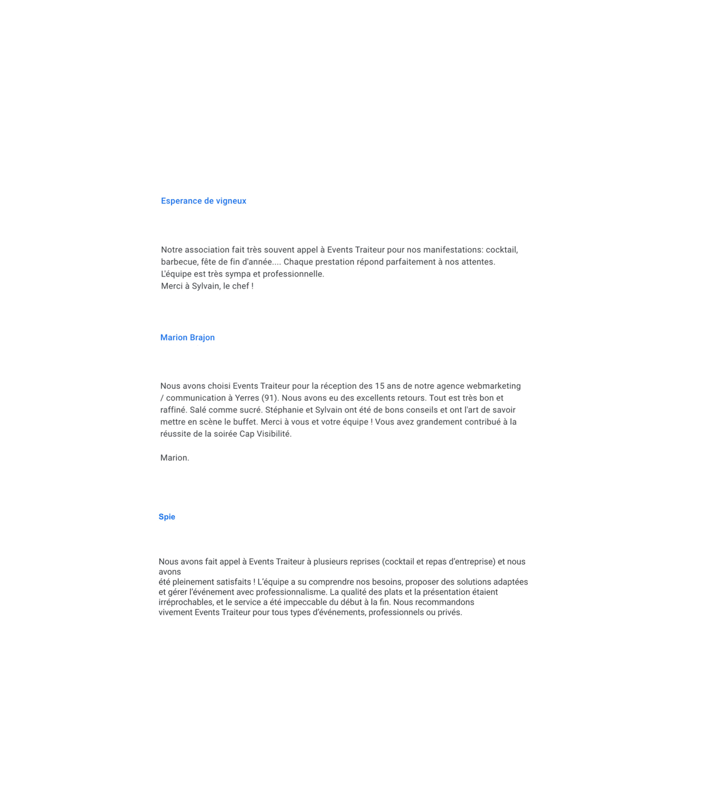 Réunissez tous vos collaborateurs autour d’un repas, d’un cocktail ou d’un buffet généreux et gourmand. Events Traiteur, votre traiteur pour tous vos évènements professionnels en Essonne : cocktail déjeunatoire ou dînatoire, petit déjeuner ou collation, repas de fin d’année, séminaire, pot de départ, inauguration, soirée de gala, réunion de collaborateurs, salon, lancement de produit, départ à la retraite, soirée de comité d’entreprise…